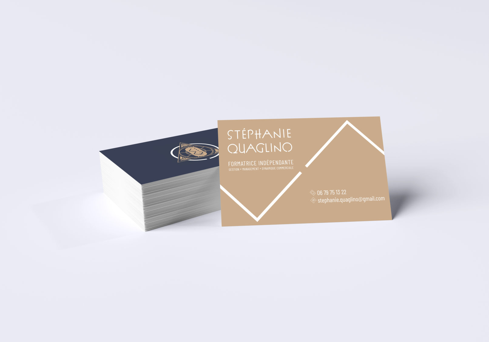 Stéphanie Quaglino est une formatrice indépendante qui propose des cours de gestion, de management, et de dynamique commerciale. Pour son identité graphique, elle propose comme contrainte d’associer les contenus de sa formation avec un univers porté sur l’Égypte et son bagage historique et culturel.